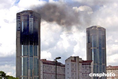 ·酷似“911” 委內瑞拉首都雙子塔不明原因發大火 (2004-10-17)