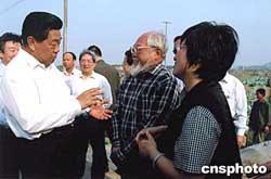 賈慶林(左一)在福建進行調研期間,于十九日在福州市閩侯縣會見在當地投資經營“雪峰農場”的臺商林圣光(中)、陳秀卿夫婦。該農場引進先進技術生產的無污染綠色食品——高山云霧茶系列,在歐盟、日本等海內外市場受歡迎。作者:楊婀娜