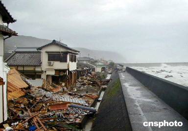 高知縣海岸邊的房屋被臺風摧毀。