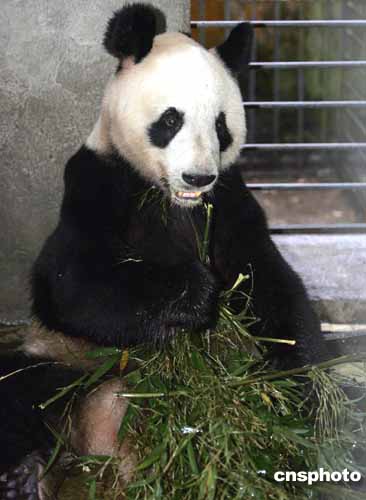 到四川臥龍安家的三只北京動物園大熊貓經過一夜的睡眠后,十二歲的“迎迎”開始在新家享受新主人送上的鮮嫩竹子等美餐。作者:任晨鳴
