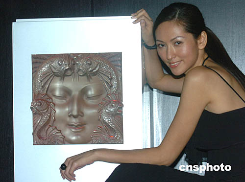 香港名模陳嘉容26日在香港中環演繹(LALIQUE)品牌水晶白色系列。