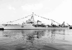 1953年,毛澤東主席首次登上人民海軍的戰艦,在連續3天4夜的航行視察中,毛主席與官兵親切交談,詢問裝備性能,了解水兵的學習和生活情況。他登上駕駛臺,鉆進狹小的機艙。短短的幾天時間,一連5次寫下“為了反對帝國主義的侵略,我們一定要建立強大的海軍”的題詞。此后不久,在國防經費極度緊張的情況下,毛主席毅然決定為海軍撥出專款,從前蘇聯購買4艘魚雷攻擊驅逐艦,也就是后來被譽為“四大金剛”的07型驅逐艦。
