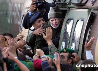 阿拉法特29日乘坐約旦軍用直升機飛往約旦首都安曼,并在那里乘法國派來的專機飛赴巴黎。