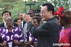 吳邦國委員長來到聯合國駐內羅畢總部,受到當地著名合唱團的熱烈歡迎。