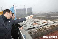代表們參觀正在建設中的國家游泳中心。作者:盛佳鵬