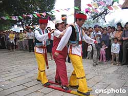 首屆中國(guó)—東盟博覽會(huì)在廣西南寧召開期間,南寧千年古鎮(zhèn)——揚(yáng)美舉行中國(guó)民俗風(fēng)情游暨聯(lián)歡活動(dòng),壯族姑娘的表演吸引了眾多參加博覽會(huì)的海外賓客。作者:阮萃