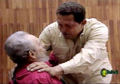 報(bào)道稱,卡斯特羅與查韋斯在上星期六晚上舉行了長(zhǎng)達(dá)八個(gè)小時(shí)的會(huì)談——這對(duì)于一個(gè)已經(jīng)78歲高齡的老人來(lái)說(shuō)非常不易,考慮到他還剛剛摔了一跤,就更有點(diǎn)難能可貴了。電視臺(tái)的畫面顯示,卡斯特羅坐在輪椅上,腿打了石膏,胳膊也用吊帶吊在脖子上。此前,卡斯特羅在不慎摔倒后只在電視上出現(xiàn)過(guò)一次。當(dāng)時(shí)電視臺(tái)只播出他胸部以上部分的鏡頭。