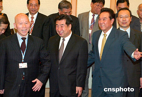 國務院副總理回良玉、國臺辦主任陳云林、農業部部長杜青林,十一月八日在北京中南海會見臺灣前民進黨主席許信良及其率領的“兩岸農業交流訪問團”。中新社記者:滿會喬