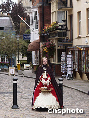 溫莎城堡外穿著中世紀傳統(tǒng)服裝當攝影“道具”的英國女郎。余瑞冬 攝