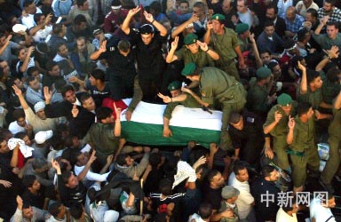 中新網11月12日電 綜合消息,當地時間15時17分巴勒斯坦民族權力機構主席阿拉法特的遺體運抵約旦河西岸城市拉馬拉。靈柩抵達拉馬拉官邸后,穆斯林神職人員誦讀《可蘭經》。隨后,阿拉法特被葬在官邸內綠樹環繞的白色大理石墓中。