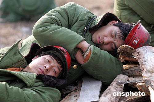 下午五點左右,在副礦口外,一群人正緊急待命,準備下井搜救被困人員。他們有的是這個礦區的工人,有的是裝備齊全的救護小隊。那些工人手持幫助呼吸的自救器,下去是要搜救位于礦區淺層的被困人員,這些地段相對安全,而救護小隊的隊員目標是礦區深層中的被困人員。記者目送著他們慢慢消失在了迷茫的空氣中,問旁邊人他們什么時候可以上來,沒有得到準確答案。