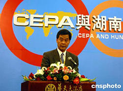 圖:梁振英在湖南談CEPA下湘港兩地經(jīng)濟(jì)合作