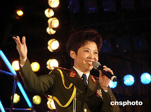 “中國金柚之鄉(xiāng)”廣東省梅州市梅縣22日晚在梅縣人民廣場舉行盛大焰火煙花文藝晚會,慶祝第三屆金柚節(jié)隆重開幕,吸引了近萬名海外僑胞和市民參加。圖為中國著名歌手董文華為僑鄉(xiāng)父老帶來了經(jīng)典的《春天的故事》。作者:卜瑜