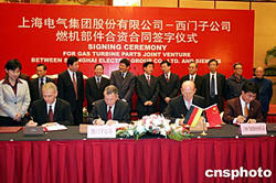 十一月二十三日,上海西門子燃?xì)廨啓C(jī)部件有限公司成立簽約儀式在滬舉行。該公司是由西門子公司和上海電氣集團(tuán)股份有限公司共同投資五千五百萬歐元合作成立的。圖為簽約儀式現(xiàn)場。作者:湯彥俊