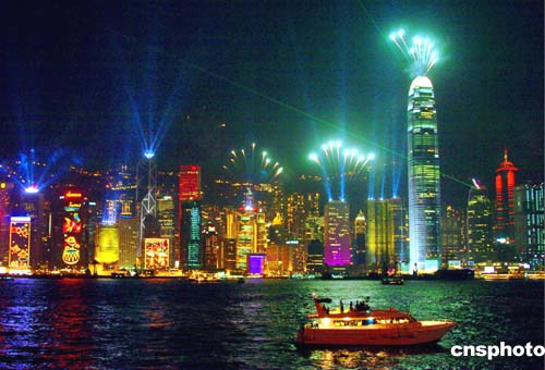 為迎接圣誕節(jié)的到來﹐周日的香港島主要建筑物在晚間20時(shí)燃放煙花﹐使得維多利亞港灣呈現(xiàn)一派節(jié)日景象。