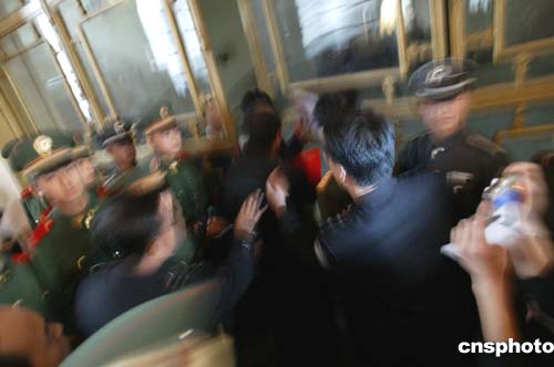 武警保護(hù)奔馳車競(jìng)拍者安全離開(kāi)拍賣現(xiàn)場(chǎng)。作者:任海霞