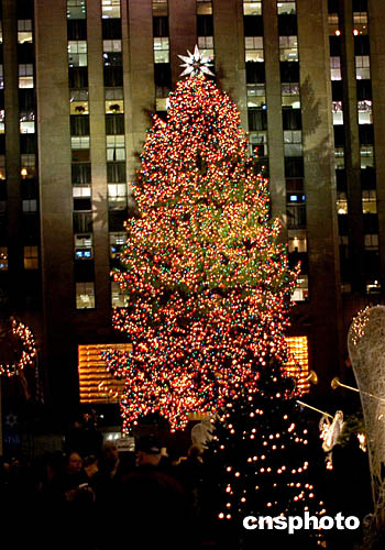 從當地時間十二月一日開始,美國紐約洛克菲勒中心近二十二米高的巨大圣誕樹,每天下午五點開始亮燈直至晚上十一點半,把紐約帶進一年中最繽紛的圣誕季節。這棵圣誕樹樹頂懸掛著由兩萬五千顆水晶組成的星星,璀璨奪目。作者:趙海燕