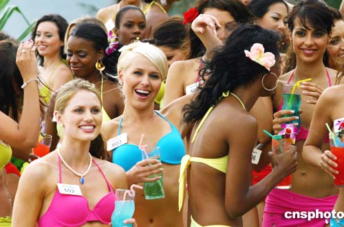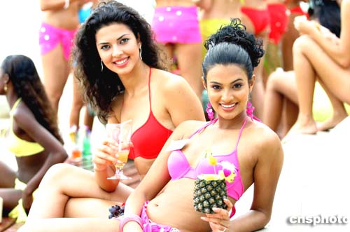 在12月4日舉行第54屆世界小姐總決賽前夕,為拍攝宣傳短片,各國美女身著泳裝在三亞開沙灘派對,盡情感受三亞熱情風情。作者:喜來登