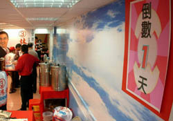 某“立委”候選人辦公室,選舉氣氛濃厚,人員穿梭其間。(臺“中央社”圖)