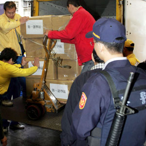 最大票倉的臺北縣270萬張“立委”選票,9日在嚴(yán)密警力的戒護(hù)下拆封,分別送交29鄉(xiāng)鎮(zhèn)市選務(wù)作業(yè)中心保管及分裝;將在11日提供選民投票使用。(臺灣媒體圖)