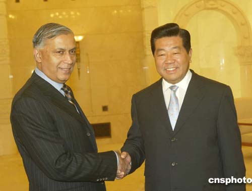 中新社北京十二月十六日電 全國政協主席賈慶林今天在北京人民大會堂會見了來訪的巴基斯坦總理阿齊茲。