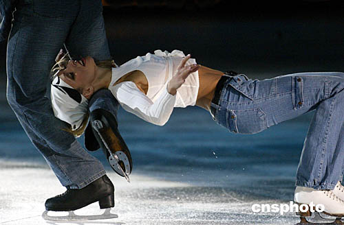二零零四年十二月十九日,世界花樣滑冰大獎(jiǎng)賽總決賽在北京首都體育館落幕,在各個(gè)項(xiàng)目中取得前五名的各國選手再次登臺(tái)表演,為北京觀眾奉上一臺(tái)完美的視覺盛宴。圖為獲得冰舞冠軍的俄羅斯選手納烏卡/考斯特麥洛夫在表演。中新社記者:武仲林