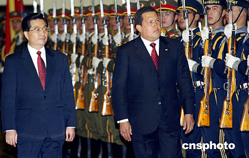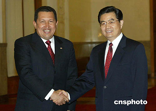 圖:胡錦濤會(huì)見(jiàn)委內(nèi)瑞拉總統(tǒng)查韋斯
