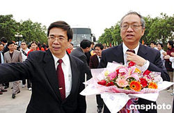 十二月二十三日,由著名華裔數學大師、菲爾茨獎獲得者丘成桐率領的華裔數學家代表團一行先后訪問廣州大學城和肇慶學院。圖為丘成桐教授在肇慶學院受到師生熱烈歡迎。作者:陳文