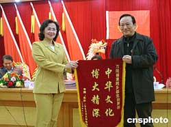 第二屆印尼華裔青少年中國民族舞蹈及中華武術冬令營,十二月二十八日在長沙閉營。閉營式上,冬令營承辦方湖南師范大學向印尼客人贈送“中華文化 源遠流長”的錦旗。”作者:劉晶