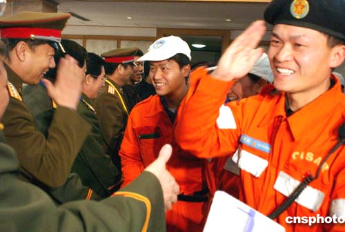 十二月三十日中午,中國有關方面負責人在北京首都國際機場為中國國際救援隊的三十五名成員壯行。作者:韓藝冰