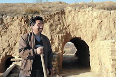 居住在寧夏鹽池縣花馬池鎮境內長城邊的農民,為出行方便于幾年前在古老長城上打開一個大門洞。(新華社記者 劉泉龍攝)