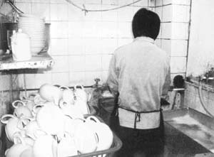 在家呆了一個(gè)月后,心想總不能這樣坐吃山空吧,又出去找工,由于不會(huì)英文與廣東話,又無專長(zhǎng),文職工作根本沒人要,結(jié)果又到了美心快餐店洗碗。這次因?yàn)橛辛诵睦頊?zhǔn)備干起來也就沒那么辛苦。干了幾天,經(jīng)理可能見我比較清爽、利索,于是調(diào)我到前堂做清潔。在前堂期間,我遇到了一個(gè)經(jīng)常來吃飯的50多歲男子,他一見到我便表現(xiàn)特別熱情,出于禮貌,我亦沒有介意,后來發(fā)展到我去收他的碗盤時(shí),他竟摸我的手,我十分害怕,又不敢同經(jīng)理講,只有躲他。到后來他竟然站在餐館門口等我下班,并要求送我回家,還說到美心吃飯完全是為了看我,這下可把我嚇懵了,第二天我便辭工不干了。這件事對(duì)我震動(dòng)很大,我再也不敢去快餐店找工了。”