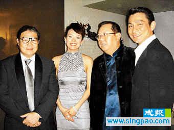 劉德華、林建岳、章子怡和霍震霆有說(shuō)有笑。 (圖據(jù)香港成報(bào))