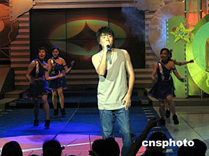 中國知名男歌手孫楠,五月二十四日夜晚攜帶個人新專集《燃燒》作客太原市電視臺《明星全接觸》。作者:張云