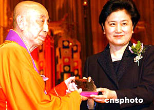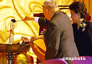 中新網5月26日電 “香港佛教暨各界迎請佛指舍利瞻禮祈福大會”開幕儀式今天上午在香港會議展覽中心舉行,香港特區行政長官董建華致開幕詞時感謝中央政府特別批準把陜西法門寺珍藏的佛指舍利及二十件一級國寶文物安排來港展出,認為這是佛教徒以至全港市民的福氣。