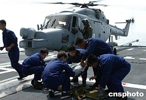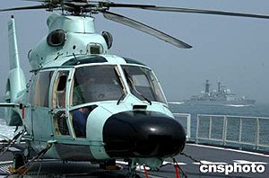 北海艦隊(duì)“哈爾濱”號導(dǎo)彈驅(qū)逐艦、“洪澤湖”號綜合補(bǔ)給艦、“海豚”艦載直升機(jī)和英國皇家海軍“?巳亍碧枌(dǎo)彈驅(qū)逐艦、“山貓”艦載直升機(jī)參加此次非傳統(tǒng)安全領(lǐng)域的聯(lián)合演習(xí)。