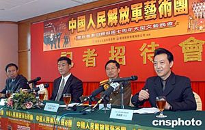 為慶祝香港回歸祖國七周年,中國人民解放軍藝術團6月21日抵港并舉行記者會,解放軍藝術團團長王兆海少將與東華三院主席陳耀莊簽署捐贈協議。藝術團將在23、24日在紅館演出,門票全部售罄,收入全部捐贈香港東華三院作慈善服務經費。作者:鄧慶樂