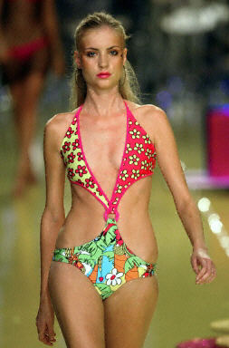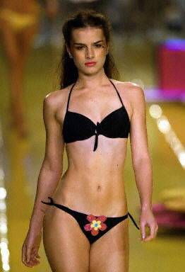 6月22日,在巴西圣保羅時裝周上,模特們展示了設計師Poko Pano設計的性感比基尼。