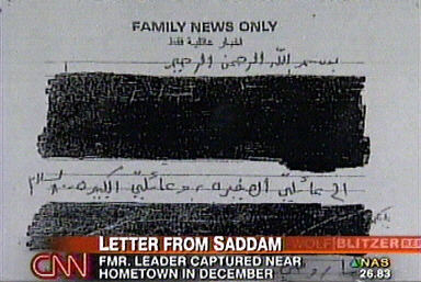 6月23日,美國CNN電視臺播放了薩達姆在獄中的一封被涂抹后的殘缺家信。