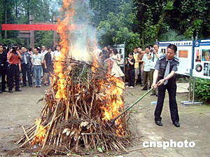 六月二十六日國際禁毒日,湖北省禁毒辦與中科院武漢植物園聯合開展焚燒活體罌粟活動。作者:艾啟平