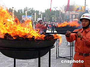 時值“6.26”國際禁毒日,寧夏在首府銀川一廣場集中焚燒了四十七點二公斤毒品、五十七點五公斤大麻籽和部分精神藥品,倡議社會各界抵制毒品,參與禁毒。作者:劉呈軍