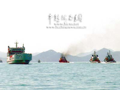 此時,觀摩演習的人們發現,在出事船只周圍,已經有多條各類救助船開始行動,中國救助船“南鷹”輪和“南海救一六八”輪一左一右向燃燒著的遇難船只進行壓制性滅火。兩只泡沫槍和一只高壓水槍對準海難船強制滅火。此時的場面蔚為壯觀,一只高壓水槍激起的水霧在熱帶陽光的照耀下出現了一道漂亮的彩虹。