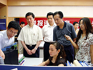 7月1日上午,國務院新聞辦公室副主任蔡名照來到互聯網“違法和不良信息舉報中心”看望工作人員,對工作人員表示慰問。(中國網圖)