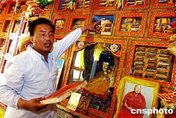 七月十二日,甘肅省甘南藏族自治州夏河縣藏醫院院長貢保扎西向來賓介紹該醫院藏醫藏藥學藏書館,他說,這二百八十冊藏醫藥學藥典記錄了近三千年藏醫藥臨床經驗,對后來藏醫藥的發展起著重要作用。中新社記者:王麗南