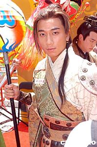 藝員林峰7月15日在香港以古裝造型出席無線電視古裝武俠劇《大唐雙龍傳》宣傳活動,林峰在新劇飾演一名小混混,憑著初生之犢的勇氣,在亂世中力爭上游。作者:鄧慶樂