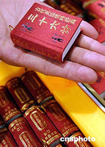 圖為一參展商推出袖珍版本讀物《三十六計》。