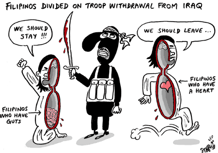 中新網(wǎng)7月25日電 在總統(tǒng)阿羅約的命令下,為協(xié)助解救在伊拉克被綁架的菲國人質(zhì)克魯茲,菲律賓撤回了駐扎在伊拉克的維和部隊,盡管這一決定使美國深感失望。
