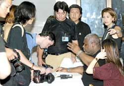 攝影記者進場簽協議