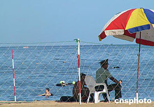 圖:武警在北戴河海濱浴場執(zhí)勤