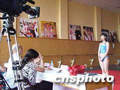炎炎夏日中,位于北京舞蹈學院的初試賽場似乎令人感覺清涼。上百名青春佳麗身著泳裝,落落大方秀出自己的曼妙身材;但更重要的是,她們需要依次通過短短一分鐘的自我介紹,在談吐舉止中展示自己的內在美。